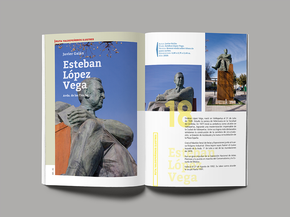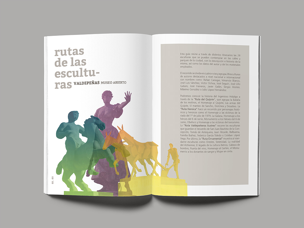 Antiguo diseño de la guía. Ruta de las esculturas Category : Editorial Cliente Ayuntamiento de Valdepeñas Libro-guía turística de la «Ruta de las esculturas» de Valdepeñas.